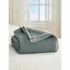 - Reversible blanket (gray and blue have dark on one side, light on the other; natural is the same on both sides)