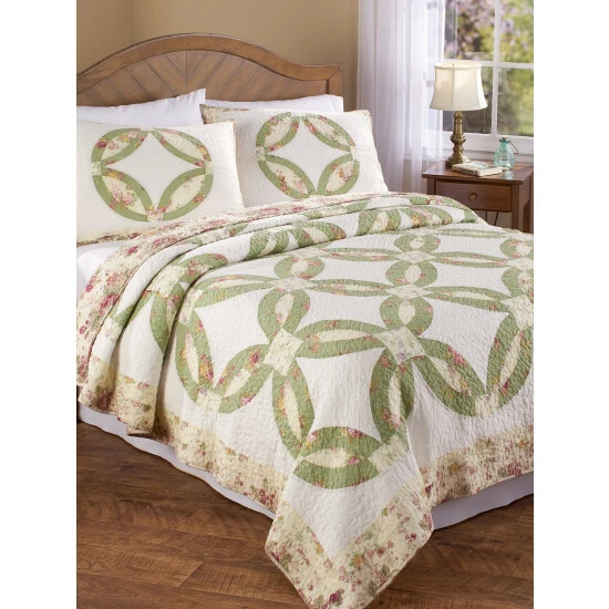 This cotton quilt has a homespun look that will make your bedroom feel warm and inviting—just like a cozy Vermont inn or bed-and-breakfast. It’s crafted with pure cotton, through and through, which makes it exceptionally soft and comfortable—and easy to care for, too. Reverses to a rose print on a cream ground. Due to the handcrafted nature of this quilt and pillow sham, each one is unique and varies slightly. The matching standard pillow sham is finished with a floral border and has two ties in the back to keep it closed (sold separately).