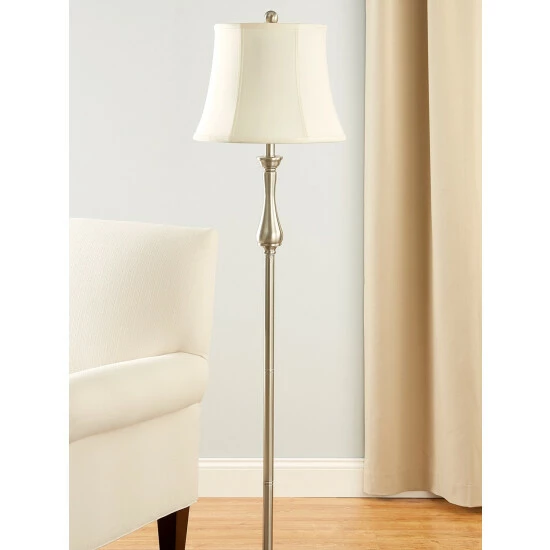 Our Windsor Floor-Style Touch Lamp accents your home with the fresh look of brushed steel or the traditional warmth of antique brass. Plus, it provides single-touch convenience. Just tap the lamp once for on and once again for off—there will be no more fumbling with switches! Each lamp comes complete with a fabric shadeand takes a standard 100-watt bulb (not included).