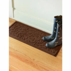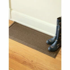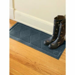 Unlike plastic boot trays where the snow and water have nowhere to go, this Waterhog tray is made with ultra-absorbent polypropylene fibers that soak up water, melting snow, and more. This means no more standing water so the bottoms of your boots and shoes will dry quicker. In fact, the boot tray traps up to one gallon of water per square yard and features a rubber border and backing to prevent moisture from leaking through onto your floor.