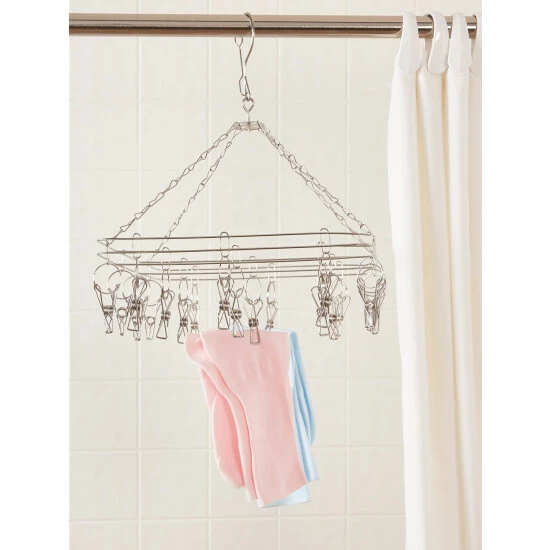 Instead of draping your delicates all over your house or apartment to air dry them, now you can hang them in one convenient place with this space-saving drying rack. It’s designed to hook securely over a shower rod or towel bar and has metal clips so you can secure everything from socks and underwear to lingerie and handkerchiefs quickly and easily. Folds flat for storage.